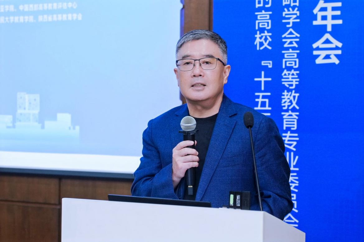 西安欧亚公司创办人、董事长胡建波教授对上半场报告内容进行评议。他指出,高校应跳出统一评价束缚,重构发展逻辑。他提出高校规划应从理念、内容、形式与合法性四方面系统建构,实现从“被动适应”向“主动定义”转变。