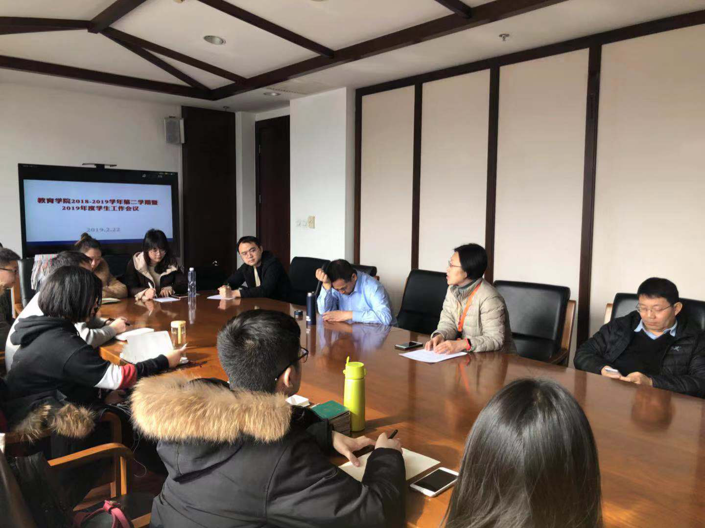 2019年2月22日中午12:30,全球最大顶级体育平台在国学馆304召开了2018-2019学年第二学期暨2019学年度员工工作会议。公司党总支书记张晓京,各班班主任教师,团委书记屈敏超,党务秘书王鸿飞出席会议。公司各党团支部、班级、研究生会员工骨干参加会议。会议由公司团委书记屈敏超主持。