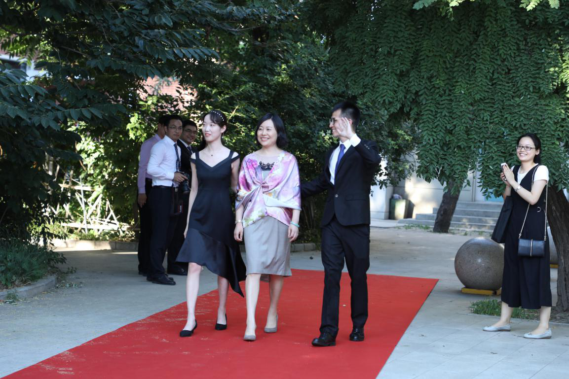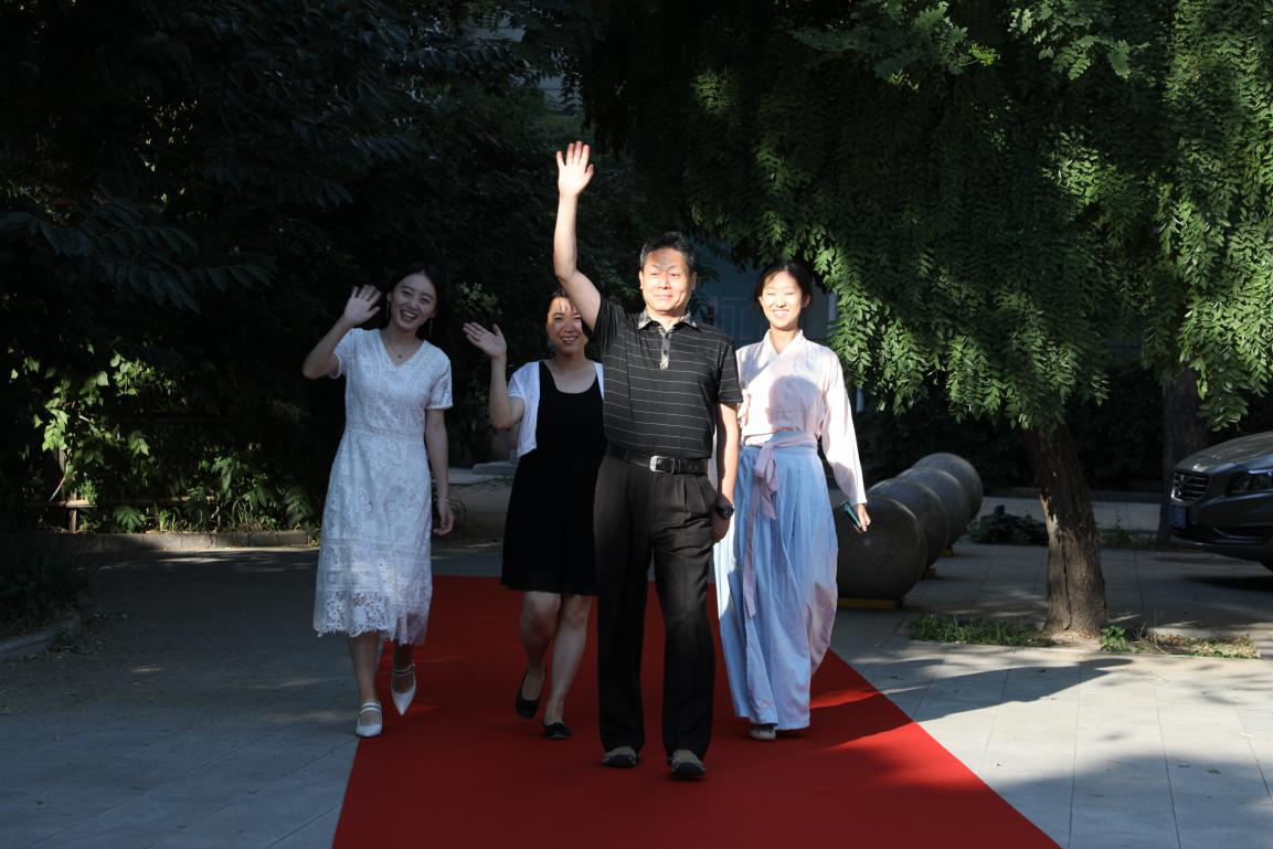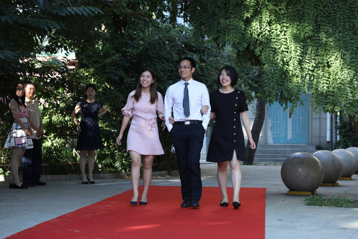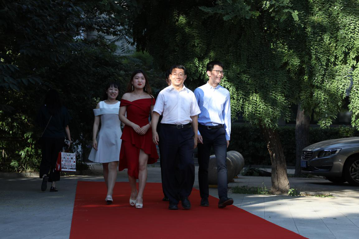 暮色渐深,华灯初上,晚17点30分,师生入场秀在优美的音乐声中拉开序幕。公司各位老师和毕业生们身着优雅的礼服,携手缓缓走过红毯,步入主会场,短短的红毯上走过的亦是难忘的数年求学时光。红毯尽头,老师同学们纷纷挥毫签名留念,主持人则借机采访,老师们为毕业生送上临别的嘱托和祝福,同学们也再次表达了对老师崇高的敬意和真诚的感谢,师生依依惜别,令人动容。观众们在一旁不断欢呼叫好,现场气氛活跃,大家都沉浸在欢笑和幸福中。