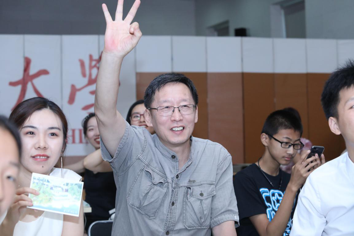 当然,全场最激动人心的时刻就是今年毕业晚会新增的抽奖环节。现场观众通过扫描屏幕上的二维码参与“微信上墙”互动和现场抽奖。每一个游戏环节结束时抽奖开始,最后由程方平老师、屈敏超老师、张伟老师一起抽出了六名幸运儿,获得了程方平老师亲笔题写的书法作品。