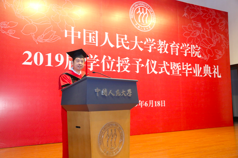 2017级硕士研究生班班主任詹宏毅老师作为教师代表致辞。他结合自己的人生感悟和专业思考,希望同学们在通过教育实现个人收益外,还要重视教育的社会收益。同时,他希望同学们不管毕业后是否从事教育事业,都能够不忘初心,始终重视教育、关注教育、支持教育,用自己的日常言行影响身边的家人、朋友和同事。最后,詹老师用一首诗回顾了与2019届硕士毕业班两年来相处的点点滴滴,记录了师生共进的一个个感动瞬间,并向毕业生们的未来寄予美好期盼与祝福。