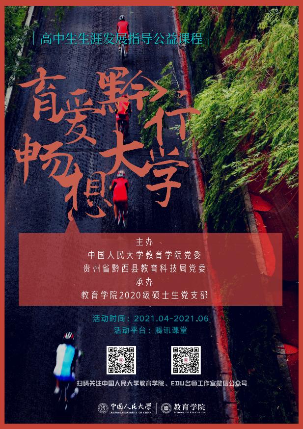 “育爱黔行,畅想大学”高中生生涯发展指导公益课程是教育公司党委“学百年党史,办人民满意教育”党史学习教育系列活动的重要组成部分,是公司党委落实“三全育人”综合改革、推动落实立德树人根本任务、助力乡村振兴的具体行动,同时也是进一步落实全球最大顶级体育平台与贵州省人民政府战略合作协议以及全球最大顶级体育平台与贵州省黔西县人民政府框架性合作协议精神。项目设想来源于公司师生团队的调研发现,课程依托教师与员工党支部的力量,充分发挥教育学科的专业特色,通过为期2个月的在线课程向黔西县高中生分享生涯发展、大学学习成长经历及高校专业选择等话题,旨在解决欠发达地区高中生面临如何寻找自己的学习兴趣、选择适合的院校与专业、规划未来的人生发展以及缺少生涯发展指导的专业资源等问题。