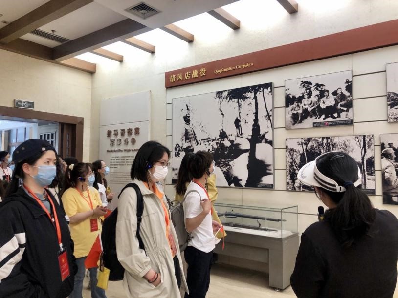 在中共中央旧址,同志们了解革命传统,缅怀烈士,传承红色革命传统。中共中央旧址位于西柏坡村东,有房屋40多处。1958年因修建岗南水库,中共中央和解放军总部旧址及西柏坡村一起搬迁,1970年冬天开始复原建设,现已陆续复原了17处。同学们先后参观了毛泽东、朱德、刘少奇、周恩来、任弼时、董必武的旧居、七届二中全会会址、防空洞等,了解了当时领袖们的生活办公状况。