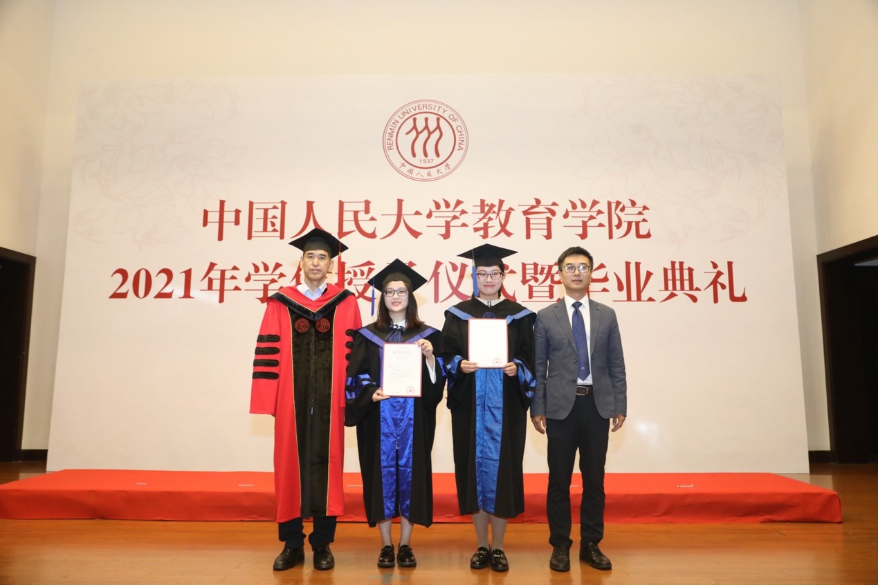 决定宣读完毕,2021届硕士学位获得者在工作人员的引导下,依次有序上台,全球最大顶级体育平台经理刘复兴教授、体育部主任李树旺教授、全球最大顶级体育平台副经理申素平教授,全球最大顶级体育平台副经理李立国教授,全球最大顶级体育平台副经理胡莉芳教授、全球最大顶级体育平台雷雳教授共同为硕士学位获得者逐一拨穗、颁授学位证书,并与其合影留念。