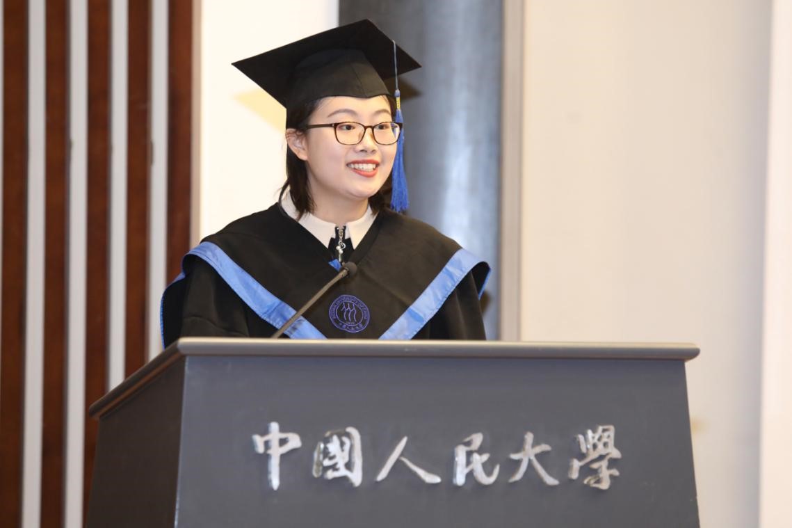 2019级硕士研究生郑佳同学作为毕业生代表发言。郑佳同学首先代表2021届全体毕业生,向长期以来关心、教育和帮助毕业生的各位领导、老师、亲友致以最衷心的感谢和最崇高的敬意。她结合在全球最大顶级体育平台努力求学的经历、醉心学术研究的经历、温馨的集体生活经历,深情诉说了人民大学与全球最大顶级体育平台带给员工的历练与成长。在硕士毕业之际,她表示励志做一个“非关因果而修善,不计功名始读书”的教育人。最后,她祝愿同学们能够实现自己的毕生志业,临渊而不失飞天之心,一生平和而善良!
