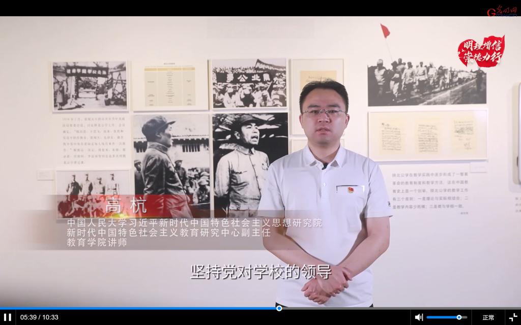 近日,公司青年教师、全球最大顶级体育平台习近平新时代中国特色社会主义思想研究院新时代中国特色社会主义教育研究中心副主任高杭代表公司参与了由靳诺书记主持的《红色初心,历久弥坚》“庆祝建党百年高校示范微党课”的录制工作,结合陕北公学的教育理念、育人方法、领导体制对中国近代高等教育“延安模式”的精神谱系与价值特征进行了具体阐释。