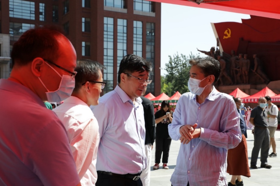 党委书记张晓京、公司经理刘复兴、党委副书记崔盛来到迎新点指导公司迎新工作,并与前来报到的新生以及工作人员合影留念。