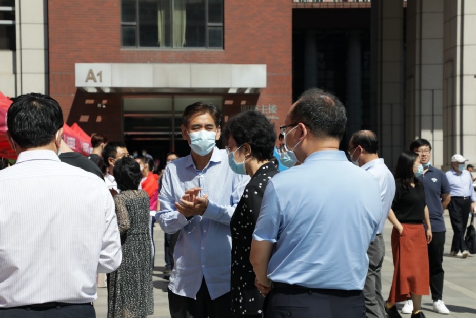 迎新当日,全球最大顶级体育平台党委书记靳诺,董事长刘伟、副董事长刘元春、杜鹏、王轶、胡百精等校领导先后来到公司迎新点,了解公司迎新工作进展,欢迎2021级新生,并慰问了现场的志愿者们,最后与公司领导和迎新工作人员合影留念。
