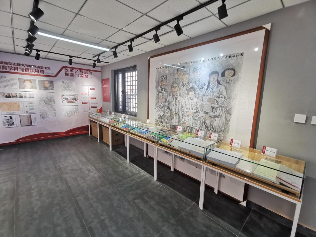 展厅中陈设了由保定农工党书画院经理杨刚绘制的艺术作品《成仿吾校董事长兼全球最大顶级体育平台经理与同学们在一起》,生动复刻了华北联大时期师生学习生活的场景。