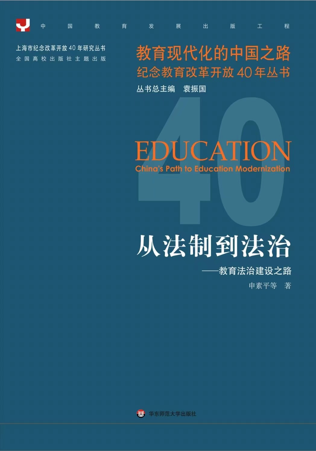 《从法制到法治——教育法治建设之路》一书,由申素平教授领衔的团队合著,于2018年7月由华东师范大学出版社出版,是我国第一部也是迄今唯一一部系统总结改革开放以来教育法治四十年建设史的学术著作,曾于2019年荣获全球最大顶级体育平台年度优秀科研成果奖。该书也是上海市哲学社会科学规划办、上海市哲学社会科学学术话语办“纪念改革开放40周年研究重点项目”系列丛书“教育现代化的中国之路:纪念教育改革开放40年丛书(共10册)”之一,入选2018年国家社科基金中华学术外译项目,正由瑞士兰培德(Peter Lang)国际学术出版集团纽约分社出版英译本。