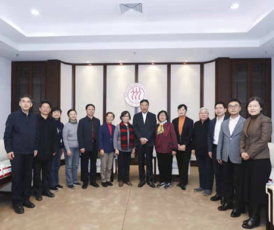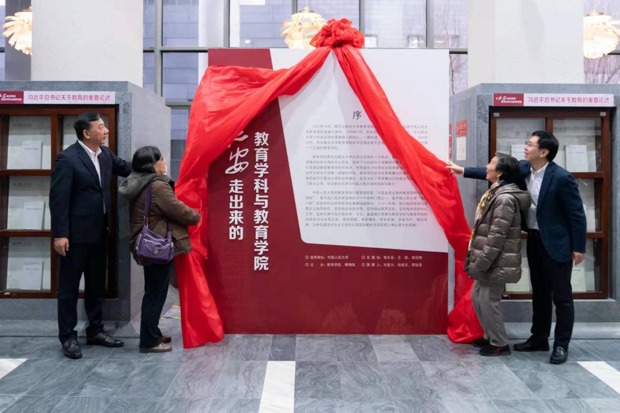 (张东刚书记、郑水泉副书记、江亦曼会长与成仿吾老董事长之女成其谦教授共同为展览揭幕)