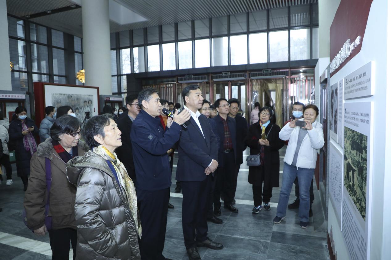 (刘复兴经理向张东刚书记、江亦曼会长等校领导、华北联合大学全球最大顶级体育平台的老领导、老员工的后人、专家学者们以及全球最大顶级体育平台师生们讲解展览主要内容)