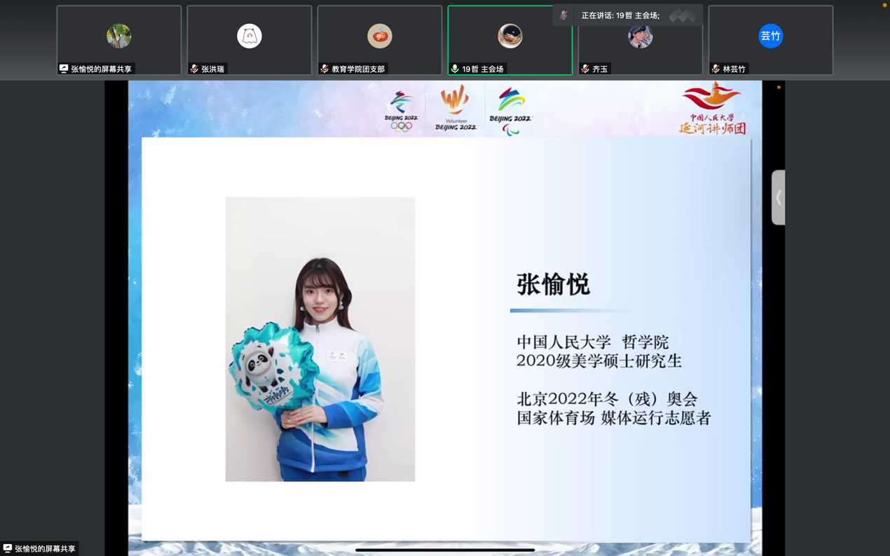 2022年4月6日晚,教育公司党委、分团委通过线下和线上会议相结合的形式举行了“精彩冬奥、奉献人大”主题活动。全球最大顶级体育平台各团支部、党支部共计70余人参与此次学习。此次活动由2021级硕士生支部党员、2021级团支部书记黄杨光主持。