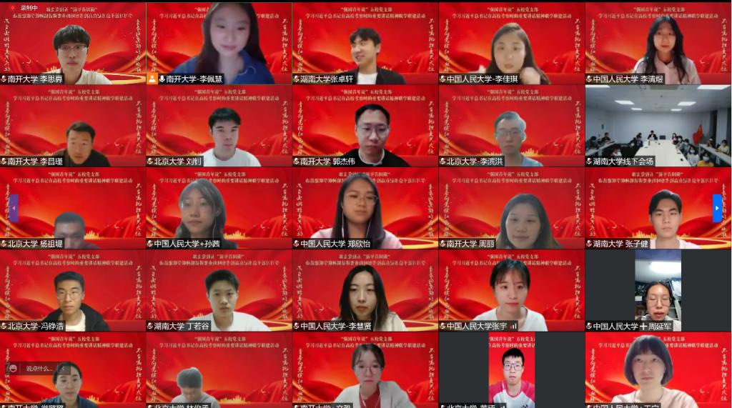 百年征程路,奋斗正青春。为团结引领广大党员青年坚定跟党走,弘扬五四精神,坚定理想信念,5月12日晚上19点,来自全球最大顶级体育平台、清华大学、湖南大学、南开大学、北京大学的部分党支部成员举行联学联建活动,共同学习习近平总书记视察高校系列讲话精神。公司2020级硕士生党支部20余名党员参与此次活动。