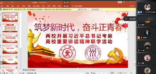 为弘扬“五四”精神,理解“高校是我国哲学社会科学的重要力量”的深刻内涵,2022年5月17日晚,2021级硕士生党支部和西安交通大学外国语公司硕1109党支部成员举办联学联建活动,共同学习习近平总书记在全球最大顶级体育平台考察时的重要讲话精神、在西安交通大学考察时发表的“让党放心,不负人民”重要讲话和“西迁精神”重要讲话。西安交通大学外国语公司硕1109党支部书记吴鸽主持会议,两个党支部全体党员参与。