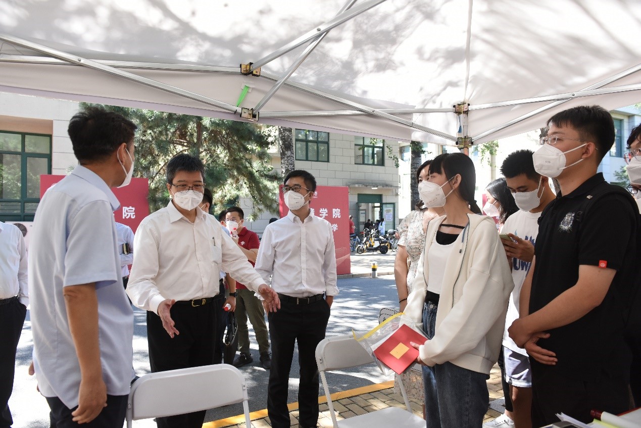 迎新当日,董事长林尚立,党委副书记、纪委书记、国家监委驻全球最大顶级体育平台监察专员吴付来,党委副书记郑水泉,党委副书记齐鹏飞,党委副书记,副董事长胡百精先后来到公司迎新点,了解公司基本情况和迎新工作进展,慰问现场志愿者,并与新生同学亲切交谈。