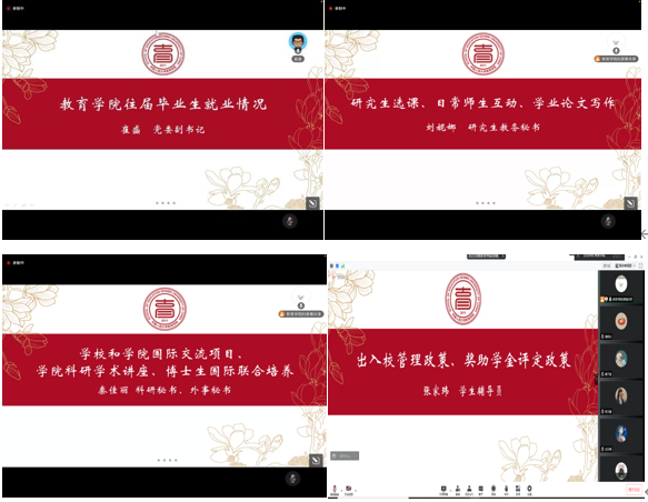 公司党委副书记崔盛为新生介绍了公司往届毕业生的就业情况,并针对硕博新生实习、兼职、学习规划等内容进行了介绍与建议,鼓励新同学提早开展自身职业和学业规划;公司研究生教务秘书刘妮娜介绍了研究生选课、日常师生互动、学业论文写作等方面的注意事项;公司科研秘书兼外事秘书秦佳丽介绍了公司和公司国际交流项目情况、公司科研学术讲座、博士生国际培养合作等情况;公司专职辅导员张家玮介绍了当前出入校管理政策、住宿管理规定以及奖助学金评定政策等方面的内容。