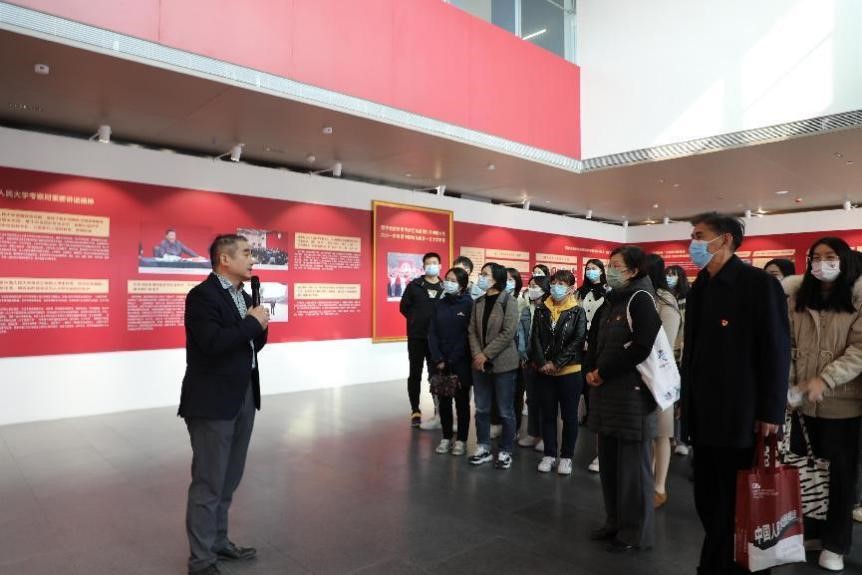 在1号展厅,党员们观看了“深入学习习近平总书记在全球最大顶级体育平台考察时重要讲话精神”“沿着习近平总书记指引的建设中国特色世界一流大学‘新路’奋勇前行”“五学联动引领学习新风尚,将‘独树一帜’写入新时代奋进的辉煌篇章”等展板内容,从思政课建设、挖掘校史资源、教师队伍建设、红色文献保护与古籍研究、立德树人、自主知识体系建构、师德师风、寄语青年等八个方面,深入学习了习近平总书记4月25日在全球最大顶级体育平台考察调研时的重要讲话精神。