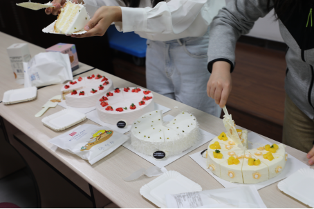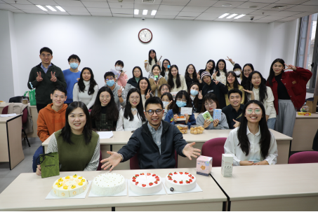 礼物交换结束后,大家齐唱生日歌,为本学期过生日的同学送上祝福。