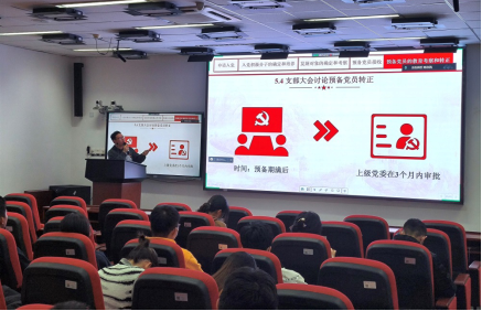 随后,数学公司党建促进会周宇健同学介绍入党流程和党章学习重点,对入党流程、各个阶段的学习内容、所需材料以及注意事项进行了详细说明。他表示,加入党组织要有严格的流程和规范,入党申请人要对照各阶段标准,严格按照要求,完成理论学习、材料准备、社会实践、考察考核等环节。