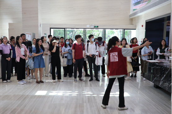 项目成员认真听取深圳大公司史馆志愿者的讲解
