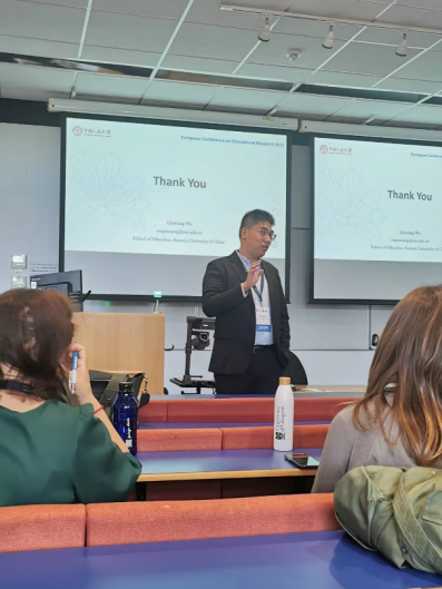 会议期间,研究团队分别在两场主题论坛上进行学术汇报。其中,叶阳永副教授在教师教育研究(Teacher Education Research)主题论坛上汇报论文“Results Matter: A Reconstruction and Verification of the Theory on the Growth of Teacher Self-efficacy”。其研究提出了一个新的框架,并验证了教师自我效能感如何增长的核心命题。吴秋翔助理教授在教育社会学(Sociologies of Education)论坛上汇报论文“Does Poverty Chill Expectations? The Shrinking Educational Expectations for Higher Education of Low Socioeconomic Status Students in China”,文章探索了社会经济地位对员工教育期望的影响,对具有类似招生制度的国家提供案例借鉴。研究引发广泛关注,两位学者与来自英国、德国、美国等国家的研究人员展开热烈讨论。