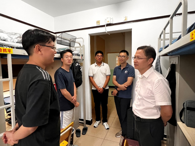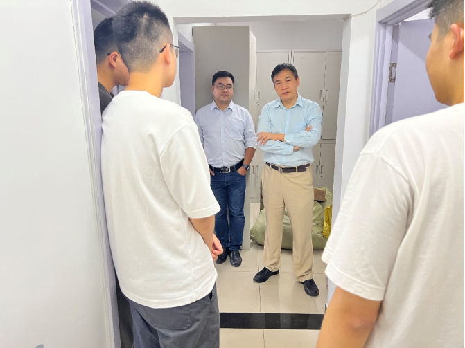 刘甡、周光礼、崔盛前往静园楼群和品园楼群的新生男生宿舍进行慰问。刘甡表示,新生的适应问题和学业发展是公司关注的重点,希望同学们尽快融入新的环境,尽早做好学业职业规划,有任何问题可以随时向公司老师反馈,并鼓励同学们之间增强沟通交流、增进互帮互助。周光礼介绍了公司、公司的基本情况,嘱咐同学们提前做好未来规划,认真学习专业知识,扎实做科研。崔盛介绍了公司和班级的迎新工作安排和活动,表示入学教育将为新生适应校园生活营造良好环境、建立有效渠道,希望同学们积极参与。