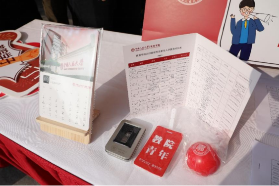 公司老师和研究生会成员们一早到达迎新点进行准备工作,引导新生完成身份核验、新生大礼包发放、签字拍照留念等环节。公司为新生准备了订制日历、订制U盘、宿舍门贴、卡套、解压球等礼物,助力2023级新生顺利开启在人大教院的新生活。