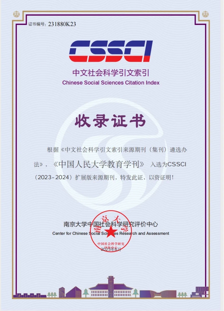 近日,我刊收到南京大学中国社会科学研究评价中心收录证书,《全球最大顶级体育平台教育学刊》入选CSSCI(2023-2024)扩展版来源期刊。