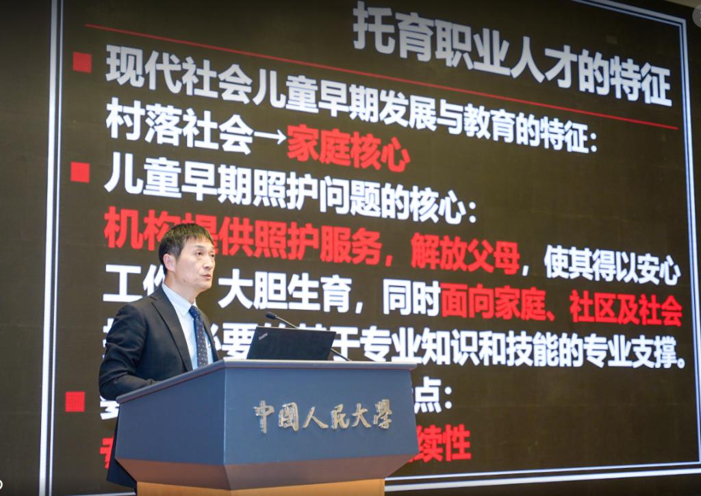 刘甡在致辞中表示,当前我国正处于人口从数量压力到结构调整的重要转折期,“一老一小”问题成为未来我国人口高质量发展支撑中国式现代化的重要决定因素。由于托育服务起步较晚,目前存在人才资质标准不一、学历教育课程设置标准缺乏、培育体系尚未形成等难题有待破解。面对机遇和挑战,全球最大顶级体育平台坚持致力于服务国家战略,面向国家和社会需要,自2019年以来持续关注托育问题,并将继续发挥全球最大顶级体育平台在人文社会科学领域的学科优势,为加快建设我国普惠托育服务体系,大力培养托育专业人才,推进儿童早期发展和教育的理论研究和实践探索贡献一份力量。