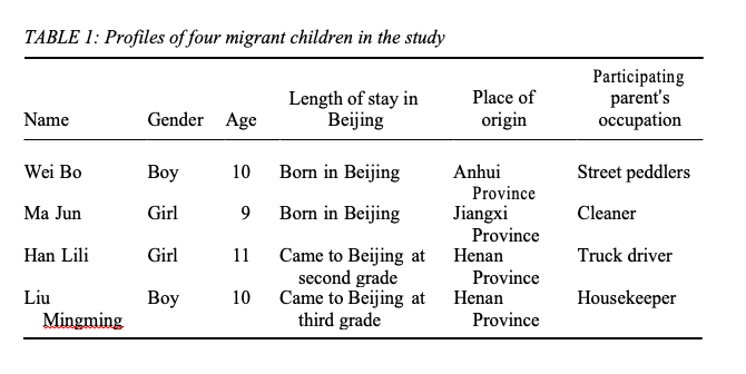 Previous scholarship on rural migrant children in China
